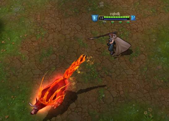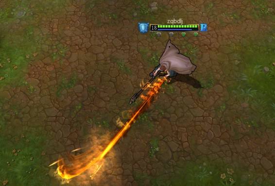 Q技能炎狼:召唤炎狼扑向目标点,对碰撞到的单位造成伤害并提高自身移动速度
