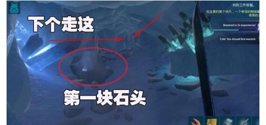三、以石头为参考,最左侧有坑,不去!我们选择中间的洞口,进去后右边还会出现一块石头,沿着石头那条路直线杀进去,右拐就能看到神器了。
