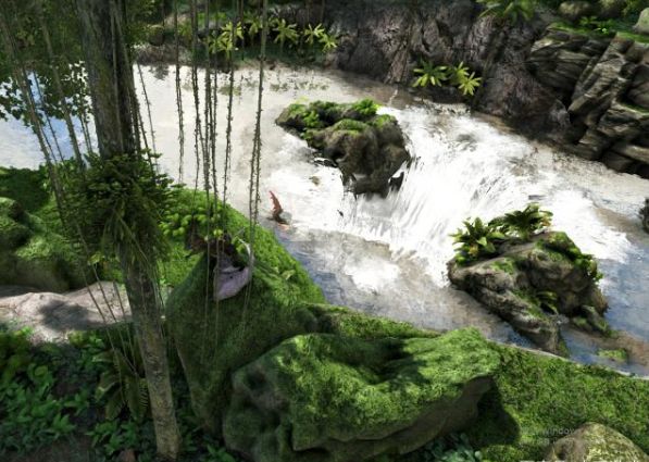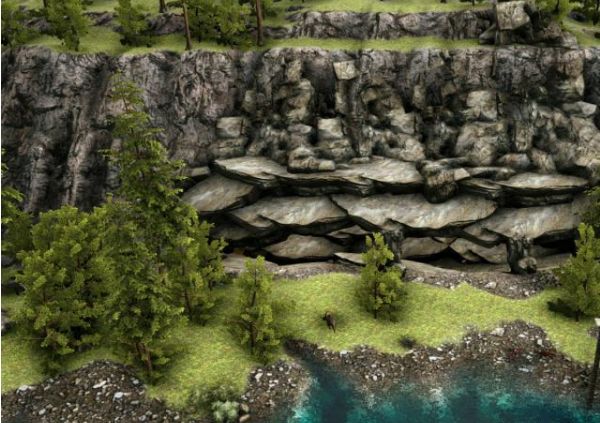 地下世界的入口有2个,第一个入口在地图的左上角,GPS坐标为32.3/92。这个路口在一个水潭里,周围全都是茂盛的树木,我们顺着坐标找比较容易找到它。这个水潭中有一个很大的洞,水流都从这个洞留下去了,这个大洞就是我们要找的第一个入口。