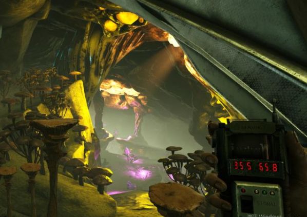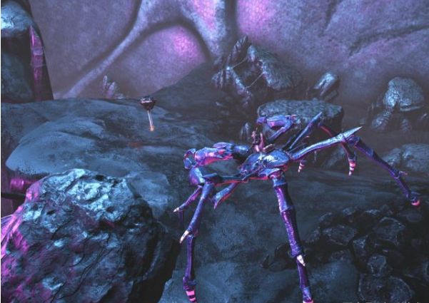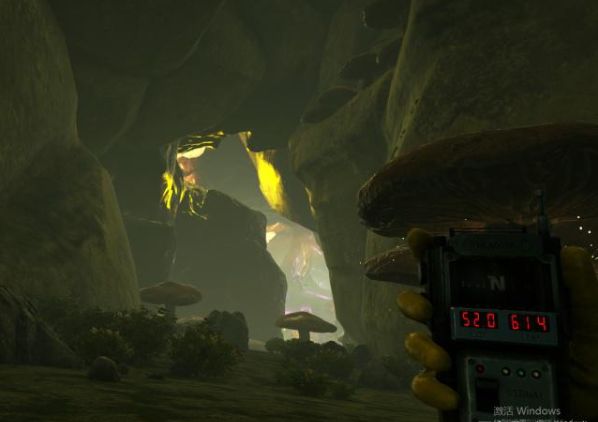 要注意的是,地下世界是畸变DLC的缩小版,它是禁止飞行的。我们如果从第一个入口进入的话会比较危险,因为第一个入口位置非常的高,我们要从上面跳下去,没有做好准备的小伙伴容易摔伤甚至摔死。我们可以在快落地时使用降落伞,这样就不会有坠落伤害了,也可以骑乘恐爪龙这类没有坠落伤害或者坠落伤害很低的生物进去,保证我们自身的安全。第二个入口就简单多了,入口处有一个大楼梯(斜坡),我们直接顺着楼梯走下去就可以了。