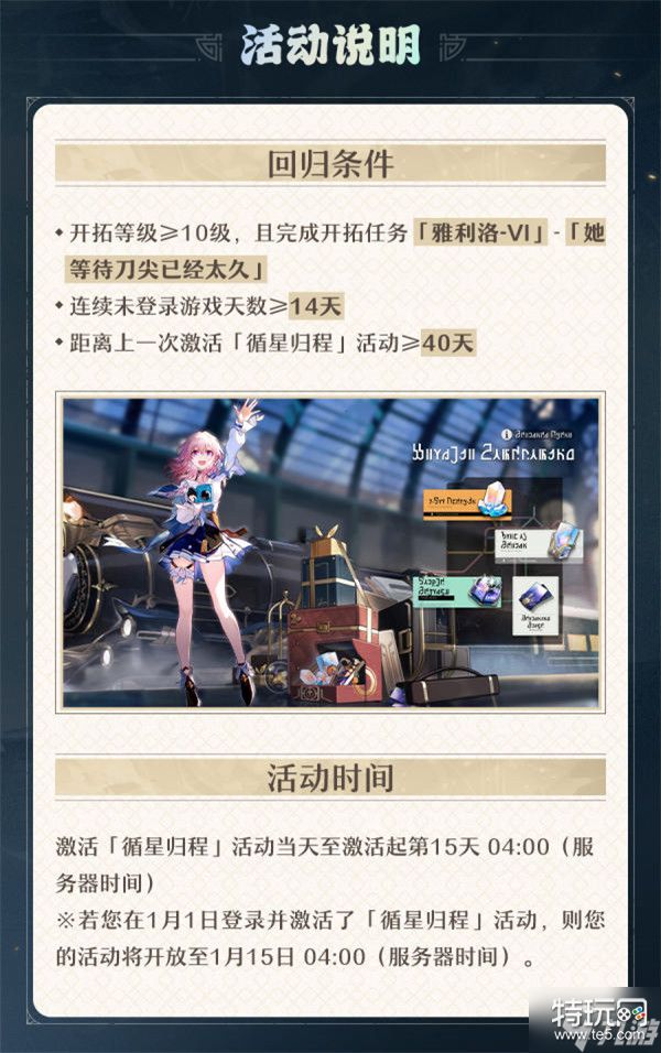 崩坏星穹铁道1.2版本即将推出,这次更新将带来全新剧情和角色。对于曾经退坑的玩家来说,最关心的就是回归活动的奖励。现在,我们终于听到了确切的消息。大家对于崩铁的回归奖励非常感兴趣,我今天就简单地给大家介绍一下。