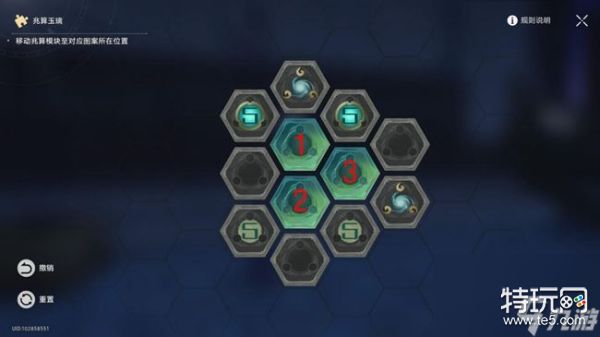 ①1号模块,逆时针(A键)旋转1次;②2号模块,逆时针(A键)旋转1次;③3号模块,顺时针(D键)旋转1次;即可完成解密。