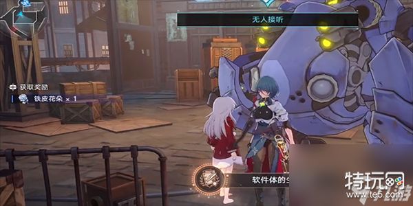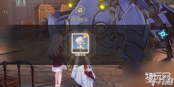 2、对话结束之后,我们就可以获得一个铁皮花朵;