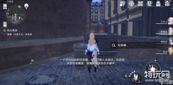 4.找到垃圾桶后,和他对话(我们什么都没有找到),然后去找下一个(根据图中的箭头的方向走)。