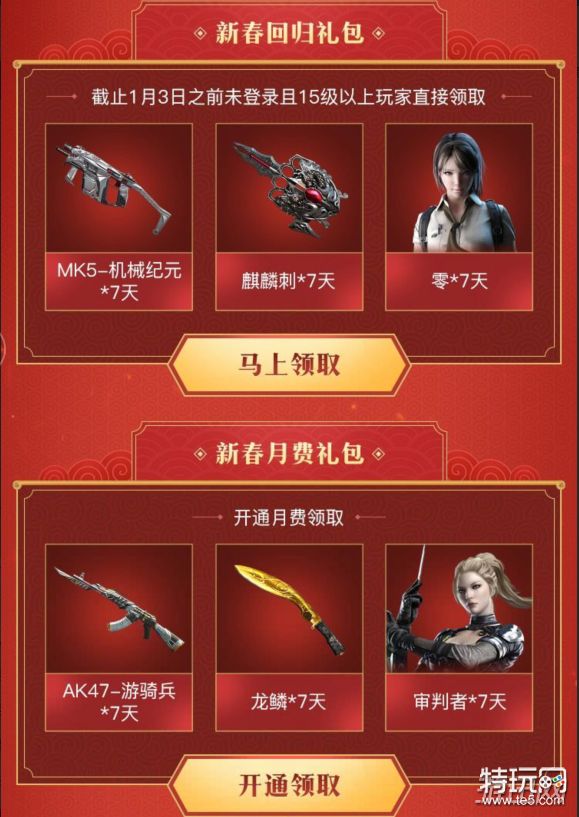 2.截止1月3日之前未登录且15级以上玩家直接领取新春回归礼包!