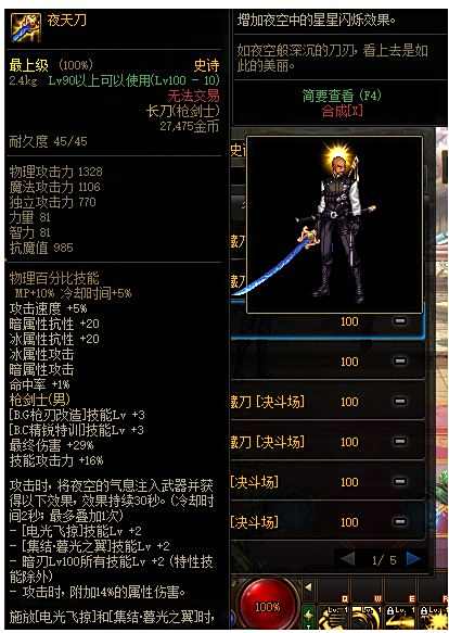 DNF夜天刀改版属性