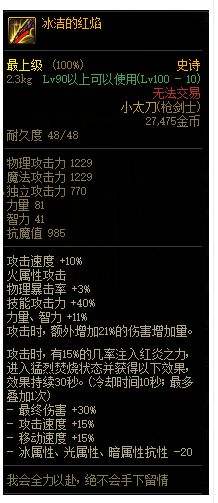 DNF冰洁的红焰是一把枪剑士专属的100级史诗小太刀。今天小编要为大家介绍的就是冰洁的红焰在100级史诗改版后的属性改动。下面一起来看看吧。