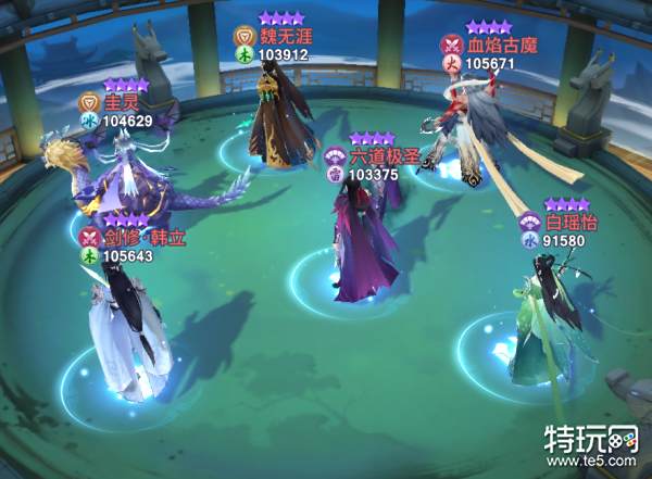 这套阵容的强势点在六道极圣能率先出手,使敌方伙伴不能第一时间释放技能,然后剑修韩立和古魔在攻击加成的buff下提前释放技能带走对面后排输出。后期可用元智大师或宫主凌玉灵代替白瑶怡。