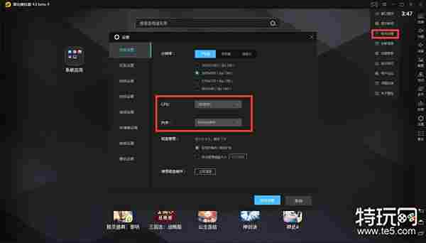 模拟器右上角软件设置,点开性能设置选择cpu2核,内存2048M保存设置;如果游戏包过大或者游戏画质要求高,可以选择cpu4核,内存4096M,保存设置即可。