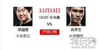 两位F1天王赛的冠军,结果谁胜谁负真的只在毫厘之间,双方职业都互有优势,虽然这次的比赛郑哉橒的状态实在是好,但是我相信仇冬生能够打破郑哉橒的不败神话!希望这次半决赛的两位中国选手都晋级成功,在F1天王赛战场上会师!