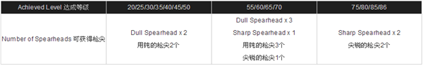 达到对应的等级可以获得[枪尖]。