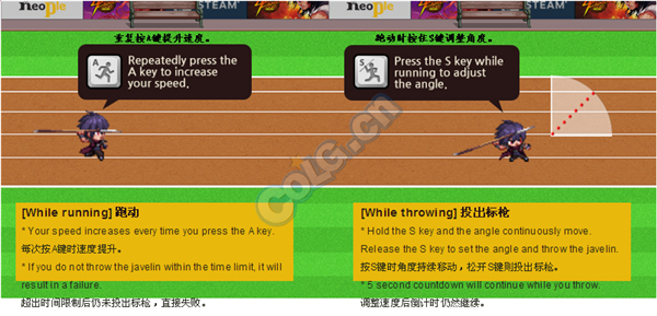 每次有5秒的时间投掷标枪,包括调整速度和调整角度。