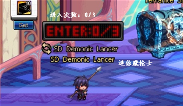 通过赛丽亚房间左下角的迷你魔枪士参与活动。每天登录可进入3次,通关推荐地下城1次可获得1次进入次数,每天最多进入9次。进入次数系账号维度。