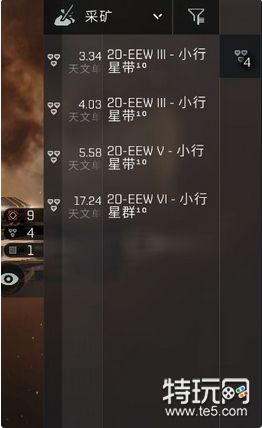在总览中找到矿带(矿带分为集群、群、带,矿物总量逐渐减少,偶尔还会发现聚合矿带,遇到了千万不要错过,聚合矿带的挖矿效率是普通矿带的10倍),选择跃迁。