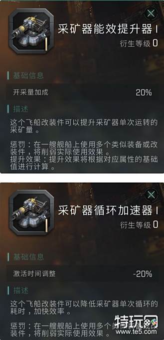 相同种类的采矿器会随着衍生等级的提高而提高采集效率,所以如果可能,请尽量用更好的(不过更好的也往往意味着更贵,因为存在爆船可能,请根据自身情况选择,避免使用自己承受不起的装备与舰船)。