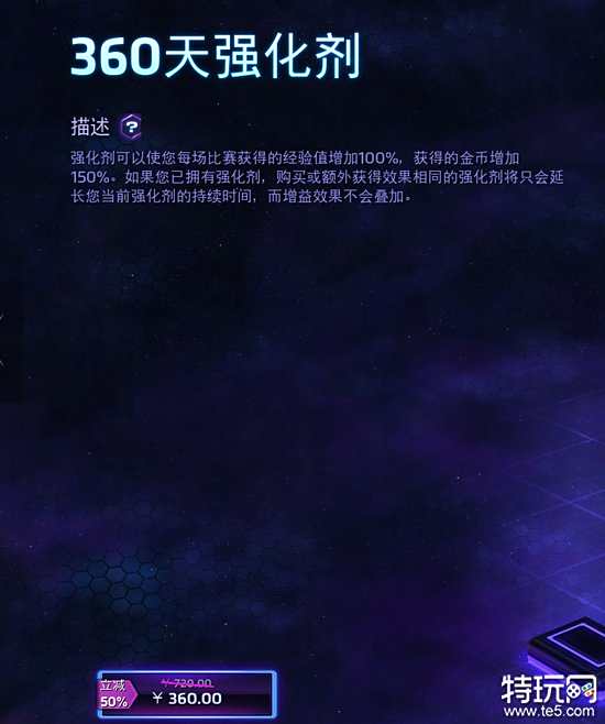 5、对新玩家来说这360块应该选择性买想玩的英雄(折后30块的和部分皮肤),等你上手玩的多了,强行需求强化剂冲等级的时候买个一个月或者买上几天的临时用都不错。