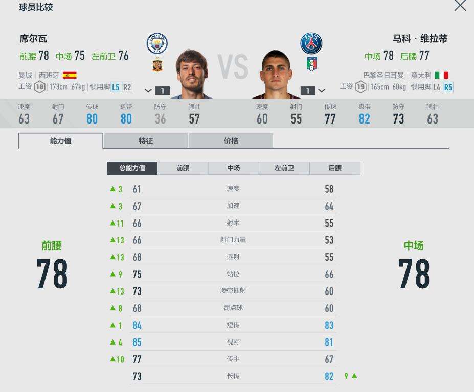 在第一名球员的信息区域进行单击,选中该球员(底色改变),将鼠标移到要进行对比的第二名球员信息区域,出现对比按钮,点击该按钮可进行两名球员的数值对比。