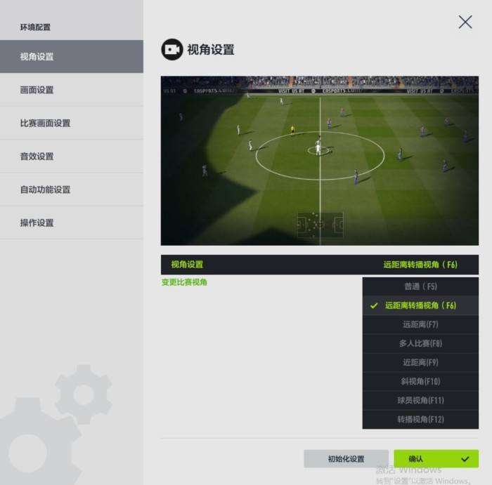 视角设置总共有8种不同视角,但是根据实际体验来看,这8种视角都没有FIFA OL3中我们习惯的F4视角直观和舒服,可能需要一段时间的适应。
