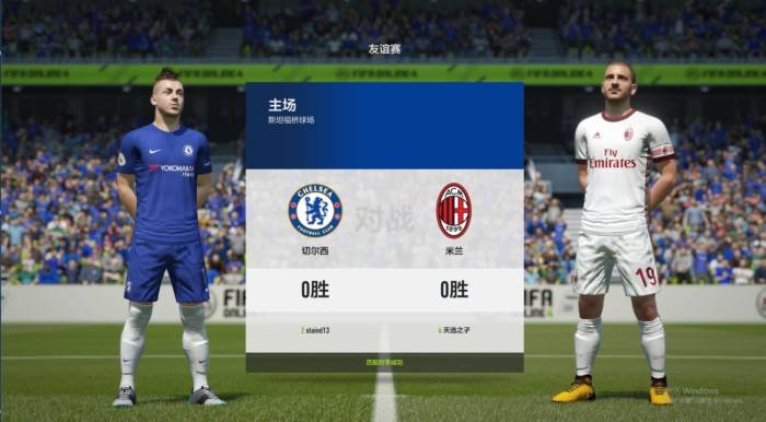 点击友谊赛匹配,稍等片刻就可以开始比赛了。匹配到对手一刻的动画比FIFA OL3炫酷不少,两支球队的当家球星从屏幕远端走来,双手背后,霸气十足。