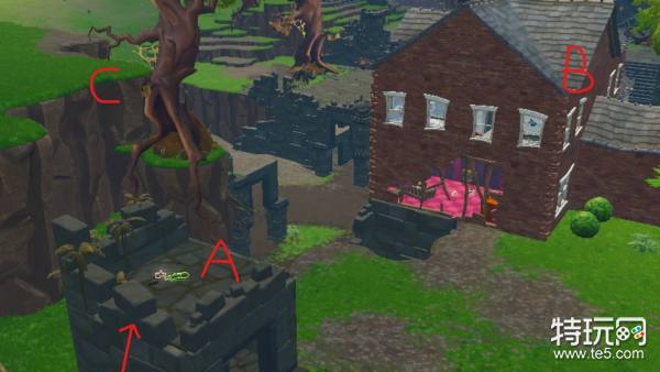 在番茄镇的边缘,能有一处大大的台阶,我们在C点若想进攻上方A点位的玩家,就需要另辟蹊径,使用正常方法进攻很容易被敌人以高打低爆头而死,所以从后面墙壁搭建斜板,提升我们的高度,从而让我们以高打低,因为面前有一处墙壁,我们搭建的斜板不需要前方建立竖板防御,但这样进攻的时候,也要注意周围敌人。