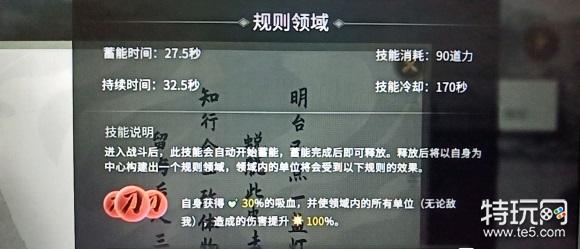 领域技能特效: 每2秒增加1层减少5%造成伤害降低的BUFF,切每秒造成500的掌法伤害。
