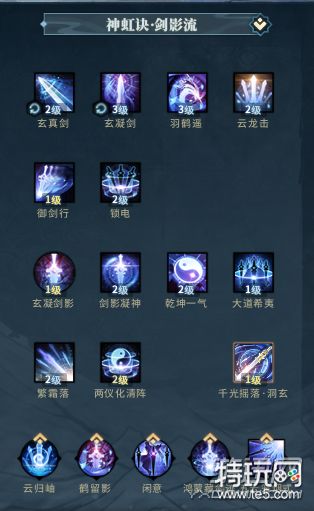 星蕴特技点法如图,争议在于第三闲意与龙剑!利弊是点闲意的剑影流三层“鸿蒙剑气”buff不容易断,龙剑需要残卷辅助回复剑意,前期龙剑剑影输出需要更加的注意细节才能打出比闲意更高的输出!大家自己木桩练习自己体会