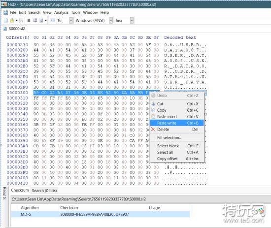 第一步,用下载的编辑器打开存档文件S0000.sl2,选中00000310到0010030F的数据。