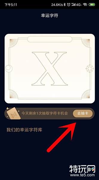 我们点击去抽卡,随机抽取一张即可获得幸运字符。