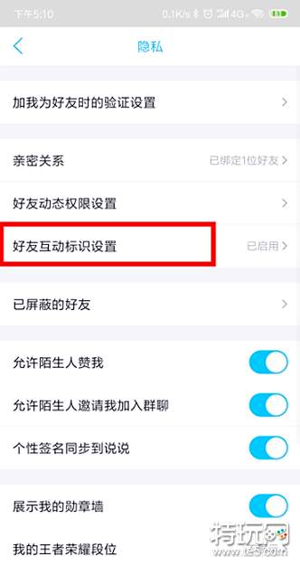 点击好友互动标识进入。