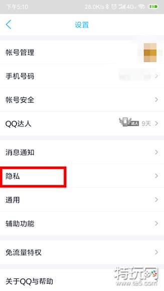 在设置界面,我们找到隐私进入。