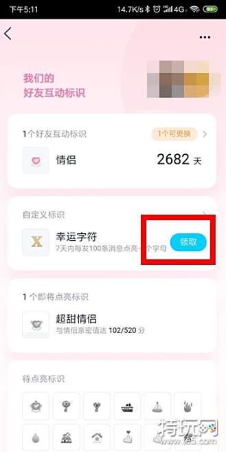 在幸运字符这里,我们点击领取。