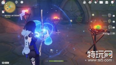 7、看到其之后,旁边还会有三个火炬,使用水元素灭掉即可,继续跟随。