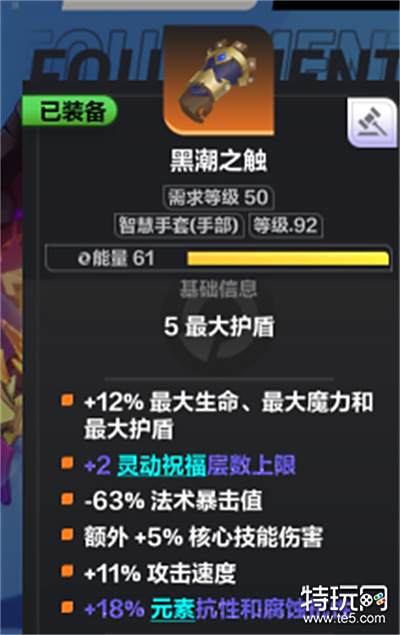 装备:【黑潮之触】,最低要求+1的灵动祝福,词条只需要不减少攻速和施法速度的都可以。