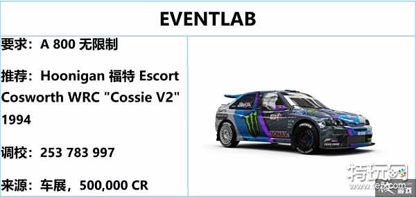 下面的两辆车都属于“拉力赛怪物“分类,所以任意一辆车都可完成 EVENTLAB。