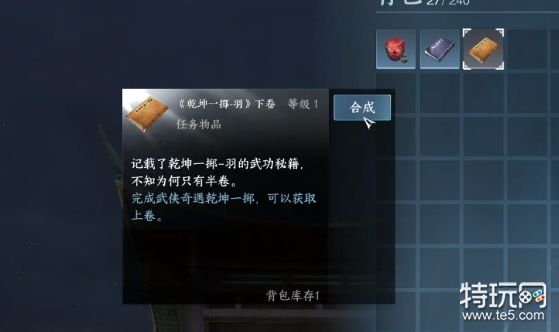 三、在背包里选择乾坤一掷羽的上下卷进行合成。
