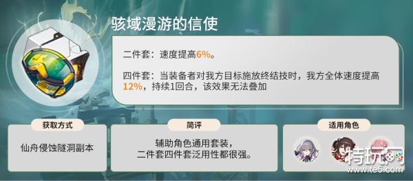 四件套全体速度提升12%,且只有对我方目标释放终结技是才能触发,触发条件限制了使用次套装的角色应该是辅助,目前速度buff相对较为稀有,且有独特的收益,所以这个套装算是一个比较不错的功能性套装。