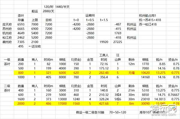 简单概括,花一天半时间运2w茶叶,占用六条船,加上本身徽州有的茶叶一共2w7,直接开刷