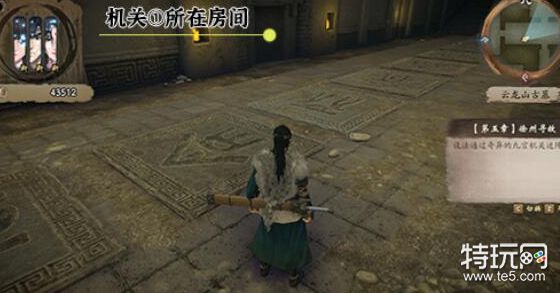 1.进入古墓下层第一个房间地面的石砖提示了接下来的“九宫机关迷阵”的解法。