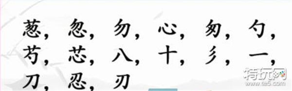 找出葱这个汉字中蕴含的十五个汉字即可过关。