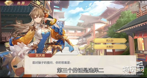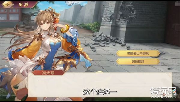 1、邀请诸葛果出游,选择第一个山间小路,此时会有两个选项,选择共同等待。