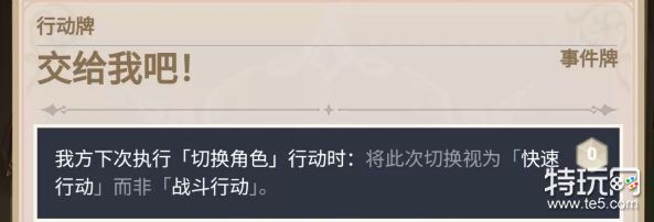 顾名思义就是战阶可以换一次角色继续战斗,配合元素反应可以达到意想不到的效果,也可在关键时刻保主c的命最好带二。