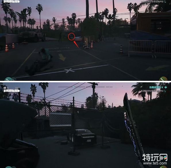 3、交谈完之后我们跑到酒店外面再往左前方,滑铲进停车场就能看到救护车了。