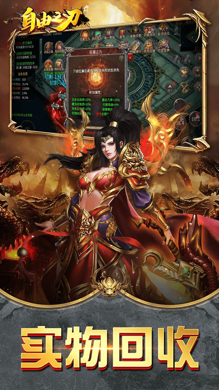 《自由之刃》是一款主打冰雪风的正版超变传奇,超高爆率攻速拉满,只为给万千传奇兄弟打造真正的免费打金服。游戏独创特色魂环系统、战灵系统、守护系统,承诺所有野外地图无限制进入,打出实物一秒回收灵符,BOSS也能爆出炫酷时装。是你绝对不能错过的良心传奇!