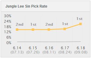 BUT!!!!细心的小伙伴们应该已经发现了!那就是在美服的统计数据中,6.18版本到来后,瞎子的登场率和胜率都呈明显的上升趋势!各位小伙伴们可能看小图读不出具体数据,那么让作者来告诉你!
