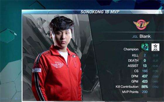 回到韩国后的LCK首战,Blank坐在了赛场上,在第一场失利的情况下成功carry队伍拿下第二场,获得他在LCK的首胜的同时,也收获了自己的第一个MVP。之后SKT的胜率一路升高,而Blank再没有缺席过春季赛的赛程,而且频繁获得MVP,韩国媒体和观众对他的关注也开始高度聚集起来。