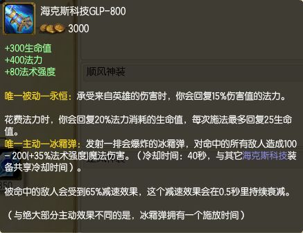 4:本身缺少硬控,或者输出不足的情况下,优先考虑海克斯科技GLP-800,例如乌鸦,卡萨丁,艾克;