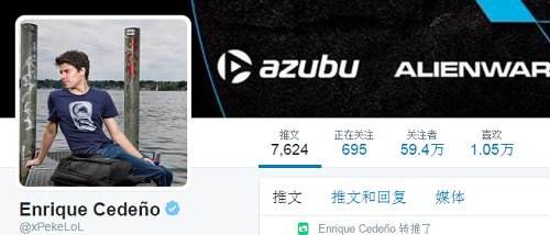 排名第三是我们的老朋友,法王xPeke。他的Twitter粉丝数为59万:性格奔放的Peke经常在社交媒体上晒出自己的半裸照和各种男色诱惑,人气如此之旺也不足为奇了!
