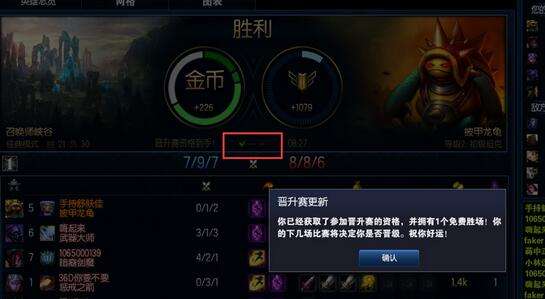 BUG2:战队排位时晋级助手也能够被启动,但是晋级失败时系统直接提示“你在本次晋级中失败”,实际上,系统已经默认奖励了一个胜场。