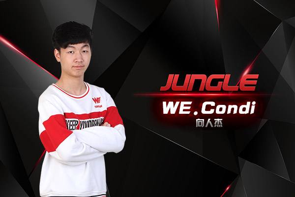 WE在本赛季阵容有了较大的变化,韩国外援打野Sprirt离队,WE在打野位置上未雨绸缪,先后引进了无双和Condi。在LPL第一阶段的比赛中,Condi担任主力打野,Condi被网友们昵称为“康帝”,在韩服上过王者1000点,在上赛季曾经是M3的打野,去年的M3的成绩虽然不佳,不过Condi与Looper两人的发挥在队中都得到了广泛认可。