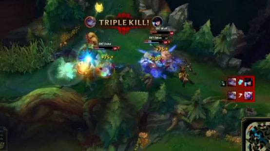 24分钟下路艾克波比追杀巨魔,巨魔闪现撞墙交出性命,SKT开大龙但是对方双TP,不过TP落地之前卢锡安奶妈被敌方3人收掉,艾克巨魔过来再击杀2人,双方各有收获,但CLG错失关键机会。